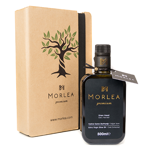 - Hediyelik kutu içerisinde Morlea Premium Erken Hasat Soğuk Sıkım Naturel Sızma Zeytinyağı mevcuttur.